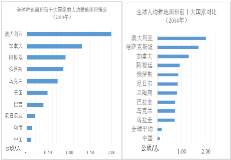 中國水資源占世界的6.4%,水土光熱配比的耕地不足國土面積10%。人均耕地面積約 0.10 公頃,遠低于世界平均水平。