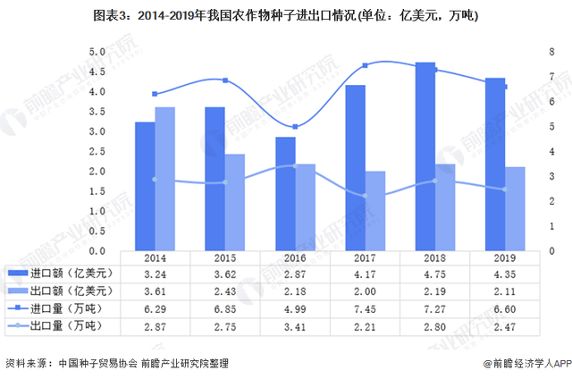 因此,中國種業(yè)大而不強,是種子凈進口國,2019年貿(mào)易逆差達2.24億美元。我國主要的進口種子類別為草種和蔬菜種子,但玉米、馬鈴薯等種子部分依賴進口。